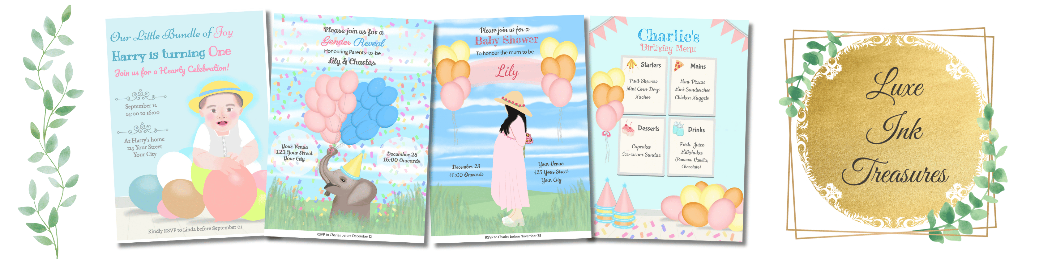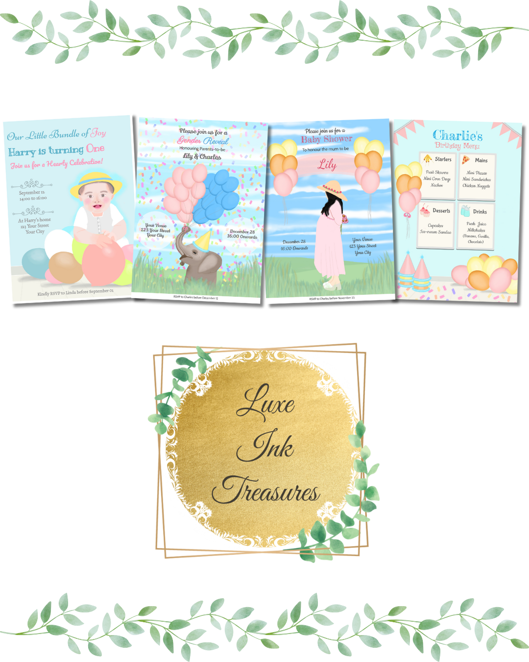 [Set of 3] Editable Christmas Cards and Invite | Whimsical Christmas Cards and Invite